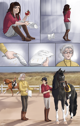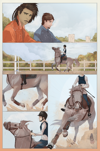 Vicen was waiting. “You can begin.” he said as he waited to see which ring she would head for. Amy turned Rifle to the dressage ring and got in please. ‘My guess was right.’ Vicen thought to himself as he turned to watch her. He nodded to her to start. Amy nodded back and started Rifle on the course. Rifle fallowed her commands well. They did the whole course with very little mess ups. When they did mess up it was small and only noticeable if you new what you where looking at. Amy was confident, Rifle took the confidence from her and preformed the whole course.