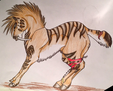 Personality: Shes an energetic happy mare, often seen as a little crazy but beyond sweet. She has a bad habit of biting her self or licking her coat till the fur is licked of and cuz of this she wears a comfortable muzzle. One where shes not to restricted but enough to stop her from biting her self. Shes nonetheless eager to please but suffers from a short attention span.