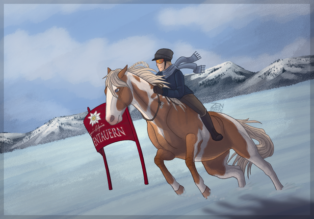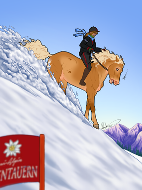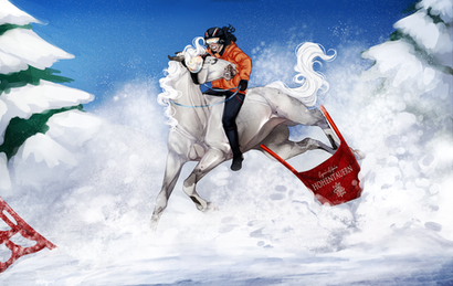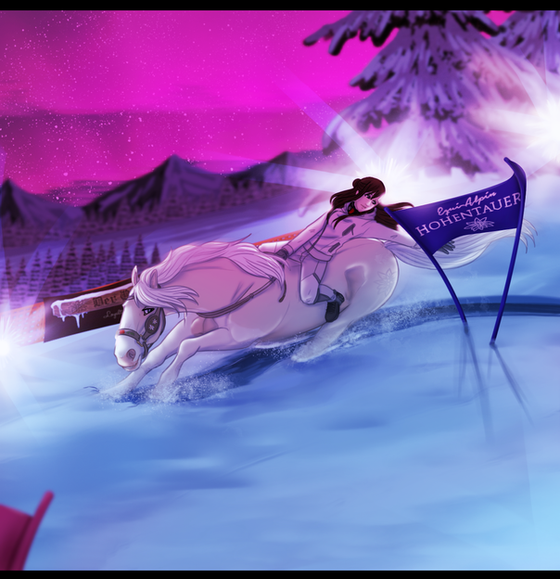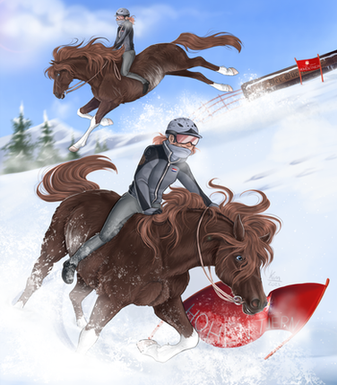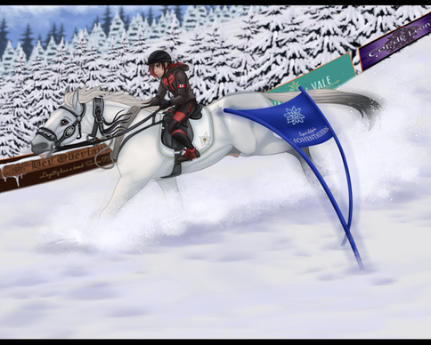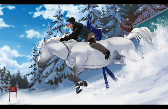 Reka.. had spoken too soon.. She KNEW she should have brought Terrien instead and if the little mishap earlier wasnt a sign.. this was Vinci... decided that the best thing was to TACKLE the signs and then lick that sweet sweet snow. The dramatic flop ahd trigger the airbag as Reka fell to the side. though she held on as best she could regardless. Her silly ponies antics cost her some bets though tossing her gloves at his head.. not that he even noticed anything being tossed at him... Oh this horse.. what would she do with him.