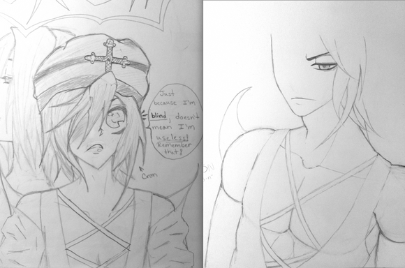 I Like the parts of where You showed Different emotions for the mouth/lip area. That can usually hard to do especially when your trying to do everything from memory of how you got everything in your head and it's not coming out on paper though.