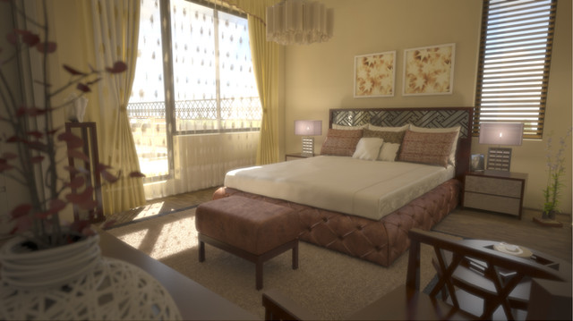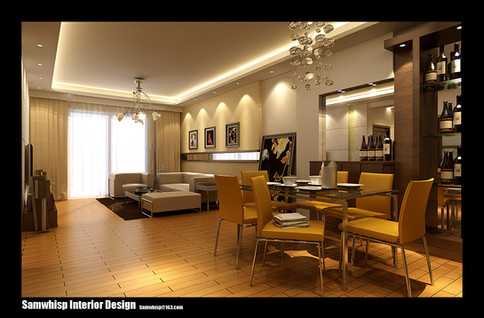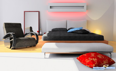 The concept is really nice and the lighting is very eye catching. Especially that chandalier, it looks very well modeled! I think the overall scene is a bit overcontrasted. The glowing lights at the ceiling looks very unusual, i wounder if you did it in Photoshop. Plant could have some nice detail on it instead of being black. I really like the design and modeling, good job