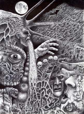 Created on November 28, 2008. It's from the 1982 movie "Tron" during the scene with the light cycles on the game grid.This piece was drawn entirely with an optical mouse using the java applet Shi-Painter.