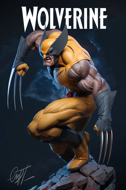 really good version of wolverine. I like the mixture of the classic costume which reminds of the good old days, although you have to say that it was also adapted and modernized a bit. and then there is the brutal and bad ass-like design of his body and the over-trained muscles that looks really great. the skin is hyperralistic and leaves me with astonishment, the areas are probably all applied individually. His facial expressions and gestures match the marvel character and make him look even more dangerous and wild. honestly he reminds me of the opponent sabretooth. good work.