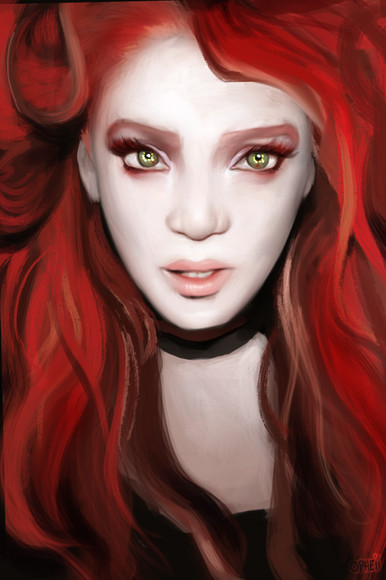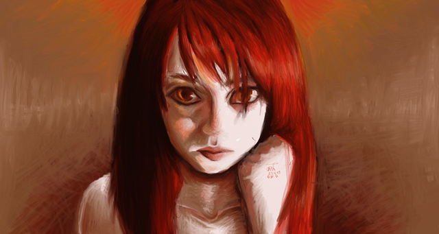 omg. i love this T 3 T all the different colours in her skin and the recurring red and the pure black. it looks so awesome <3~ but i think that the whole load of red makes for an interesting effect :3 i'm glad you didn't put more blue in it.