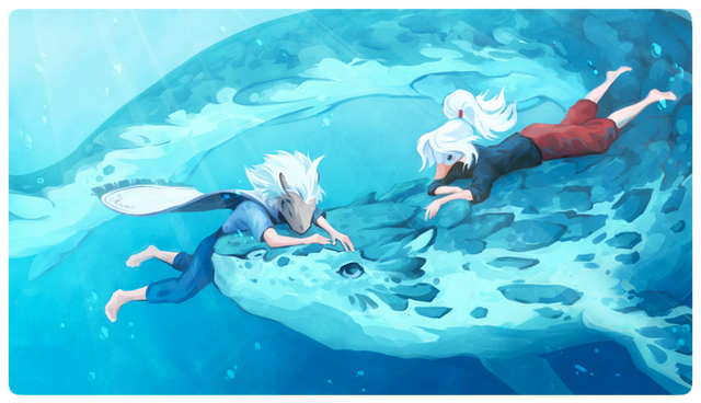 Hheh! What a cute couple: a little elf girl and an ink dragonling.