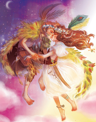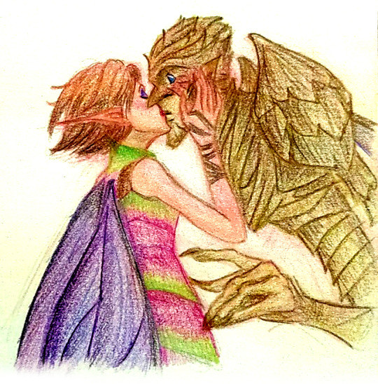 I love how you've positioned the figures and how Marianne's wings provide that startling POP of color that gives life to the whole picture. Most of Bog's surroundings are brown and grey, so no wonder he was dazzled by that brilliant shot of color from Marianne's wings This picture draws it out, just how much brightness and color Marianne has brought to the Dark Forest and Bog's world, figuratively and literally.