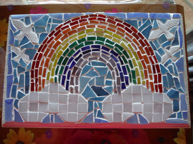Stained glass mosaic frame-recycled drawer face.