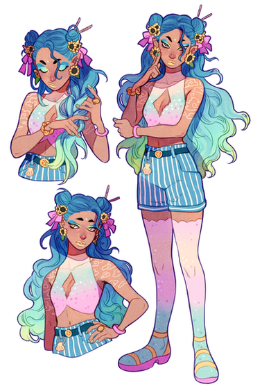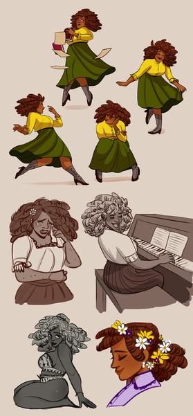 Awww, this is so cute ^<^ I really like the color pallet you used and the different poses are really adorable! The change of the flowers is pretty cool, does it has some deeper meaning or is it just her love to flowers?