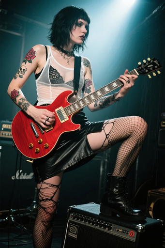 #photography #cosplay #digitalart #gothic #glamour #leather #sexy #fishnet #fishnetstockings #gorgeous #guitar #redhead #rockchick #stage