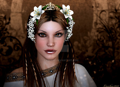 A very beautiful fantasy portrait. I like the way her eyes seem almost to glow