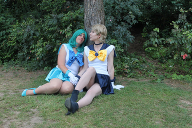 You make a beautiful Sailor Neptune! I have a question. Are you wearing pantyhose in this pic? Your legs look so smooth.