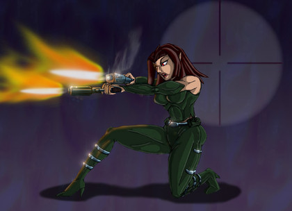 From Valiant Comics comes the deadly super powered assassin known only as Roku. Not only does she know a dozen ways to kick your @$$, but her hair is like razor wire; she can easily decapitate you with it! She's been menacing Ninjak in his comic since making her debut in Ninjak #1. Gotta love them redheadsRoku belongs to Valiant Comics.
