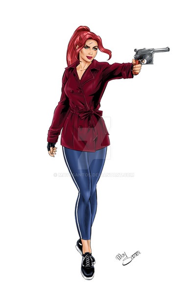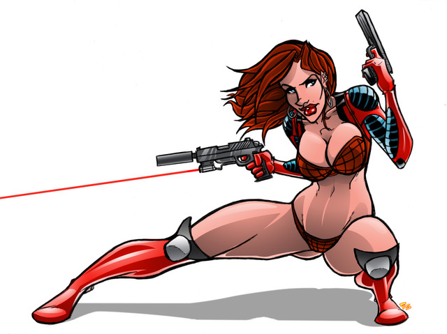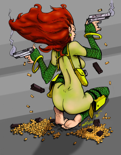 Jean Grey without psychic powers but a handgun and erotic pose! Not to mention sexy feet and delicious bum too!