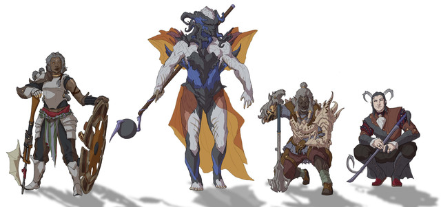Cool designs! The character in the blue robes - Are those sticks of incense on her pauldrons?