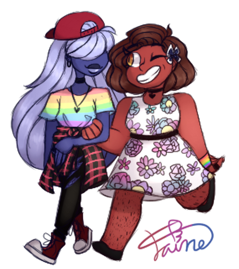 a purple latina and a blue filipino intimidate local straights(have i mentioned that i love lapithyst? like. there's never enough lapithyst tbh)