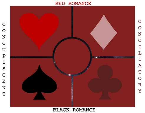 the chart mainly depends on probability. left/right means how often one gets invested in romance, while up/down means how often someone else gets interested in them. being at the bottom/right doesn’t mean it /never/ happens, it’s just rare (and special :3c)