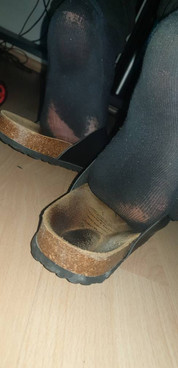 #birkenstocks #feet #feetish #fetish #footfetish #nylons #pantyhose #sandals #stockings #toes #footmodel #blacknylons #bluenails #nailpolish #blackpantyhose