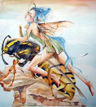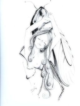 My sweet pencil runs under the paper....and makes this little insect fairy.A moment of bored....