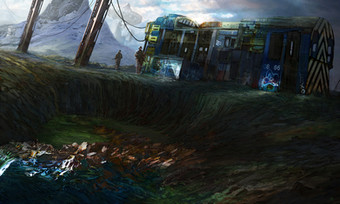 I think the color is what really got me, the blue made wasteland and ocean seem to meet together.