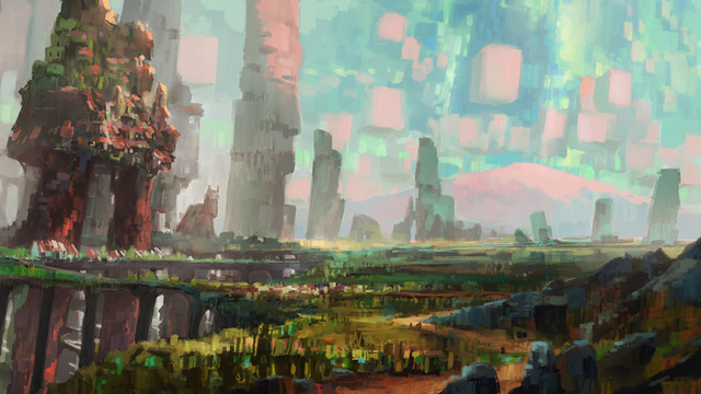 This looks amazing, I love how the person looks so small compared to the structures! 'Exploring' is the perfect title for this painting