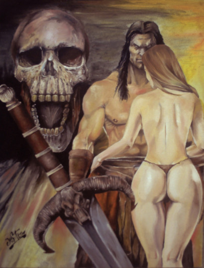 Woooah what an awesome peice! The lineart and colouring is fantastic. Conan looks exactly like Arnold in the movie!