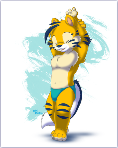 Here we have me, looking as cute and adorable as ever! As you can see, I'm wearing my standard skimpy speedo, a staple of my personality and an iconic component of my appearance! Few words can adequately describe my love for this kind of garment. It's perfect for a swim in the pool or at the beach, working out at the gym, wrestling, exploring a warm jungle, lounging around, or even just sleeping!