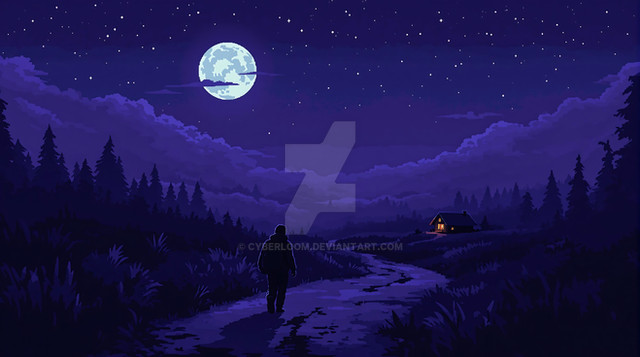 #digitalart #digitalpainting #horror #wallpaper #deviantart #surreal #portrait #photography #fantasyart #celestial_beauty #night_scene #peaceful_journey #starry_sky #glowing_moon #dreamlike_atmosphere #mystical_landscape #otherworldly_glow #moonlight_shadows #solitary_walker #artistic_composition #serene_night #tranquil_moment #enchanting_night #deep_blue_sky #moonlit_path #quiet_exploration #faint_clouds #dark_tree_silhouettes #soft_moonlight #nighttime_wanderer