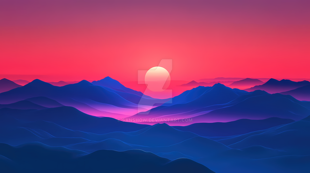 #warm_colors #blue_mountains #evening_sky #red_sun #cool_colors #orange_sky #mountain_ranges #atmospheric_perspective #vibrant_colors #tranquil_scene #mountain_peaks #tree_silhouettes #sunset_art #gradient_sky #peaceful_moment #nature_illustration #sunset_glow #natural_wonder #nature_landscape #scenic_beauty #artistic_illustration #serene_view #picturesque_view #twilight_scene #horizon_glow #sunset_over_mountains #layered_mountains #depth_and_distance #majestic_nature #forest_silhouettes