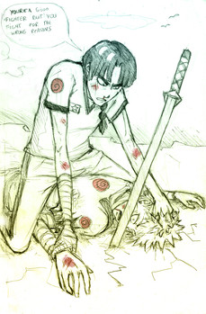 (I was thinking about the fighting scene also these days - I need to draw much of them, but I'm not good at them - so I thought i should train more...