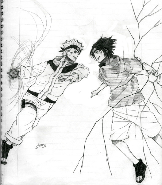 hmm i really like naruto's face here C: and sasuke's chest anyway, supercool pic, you always make such cool fightscenes O_O