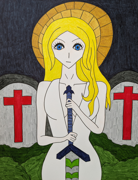 #anime #originalcharacter #dress #animewoman #bible #blonde #christianity #cross #crown #ink #inkdrawing #light #purple #ring #traditionalart #crufifix
