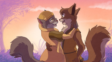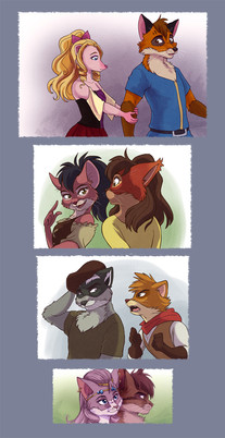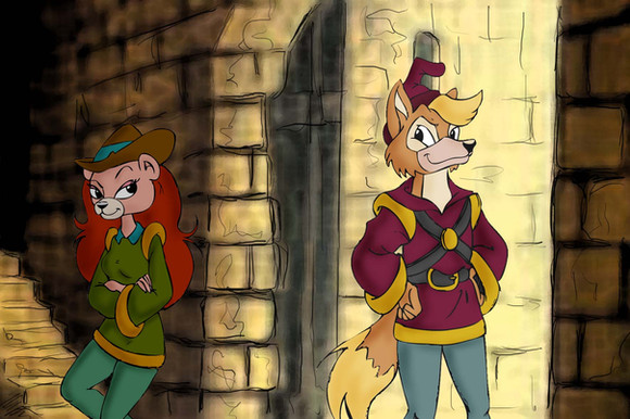 Glad you like it I did want to include Bruno, and Pepilia, but I guess the picture works quite well with just two characters. (And I suppose I do like the idea of Bonny and Baxter as a couple