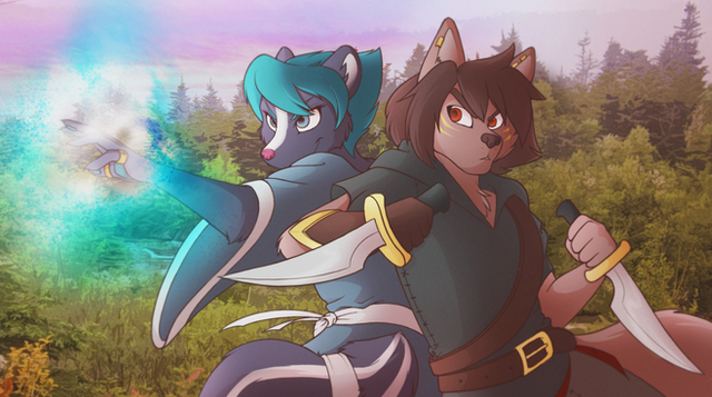 Birthday gift for SnowStoat .I always wanted to draw both Bonny and Baxter. (And I drew Baxter with loose hair because it does look really cool on him