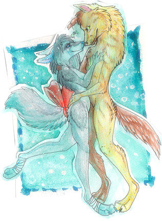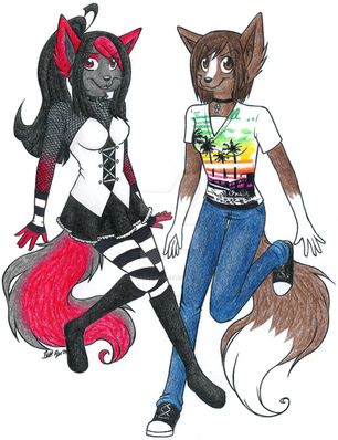 These girls are my version of the Russian kosmonaut dogs Белка and Стрелка (Belka and Strelka, meaning Squirrel or White and Arrow). Many dogs were sent out in space along with othe species in the race between USSR and USA and these two were the first ones to return after their journey.These two are not space travellers, though. I figured that they are singers ore something like that.