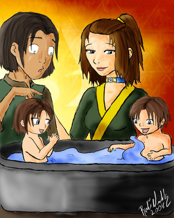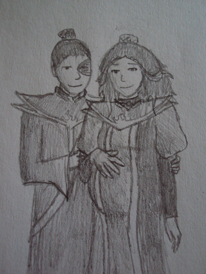 I'm actually really glad she requested a preggo Suki. I've been wanting to draw it but just....havent. I'm actually pretty happy with this. I've never drawn a pregnant woman before and I can tell I'm getting better at drawing 2 people interacting in one scene. At least that's my opinon.