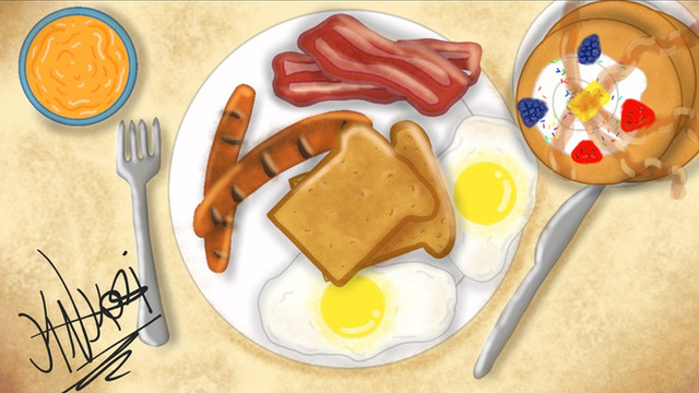 #comida #dibujo #draw #egg #food #fresas #huevo #pan #salchichas #retodedibujo