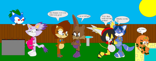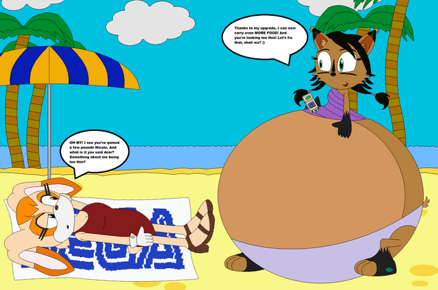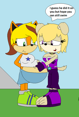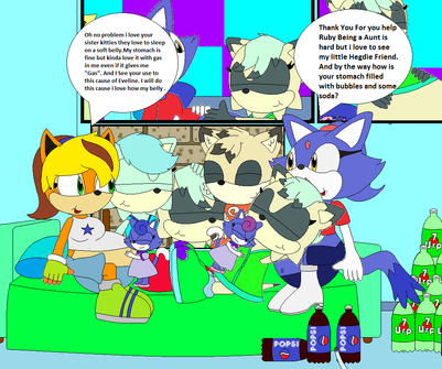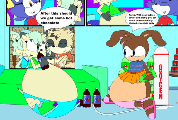 When Brandine, Ruby and Penelope were outside swimming, Penelope got thrist and Drink some soda and same as Ruby so they both drank untill there none left while that was happening Brandine was at Penelope house getting a can since she drink from a can not a bottle but back to Penelope and Ruby, When there down drinking every bottle of soda they had there bellies we like the size of full term pregnancy but they mess around and squish other bellies which made alot of noise so when Brandine came back she was surprise and a little disgusted cause she see Penelope and Ruby play with bellies each others (Brandine doesnt mind bloated bellies since Eveline does it alot when she over to visit but seeing two grown adults doing it, makes her feel off) and now a little disappointed about and know wondering how to get more soda untill there friends comes over for a pool party.Brandine belongs to My Great Pal