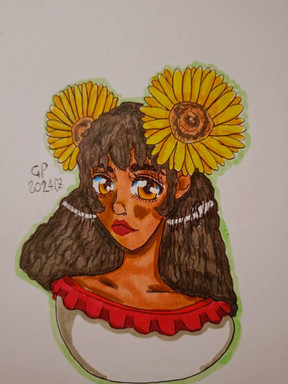 Bright and vibrant! Fun loving! Super hot in temperature! That's what I think of when I think of the sun. I loved designing her so much. So pretty!!I FINALLY bought some alcohol based markers (Tombow) and can now do skin colors! (I only bought the skin colors palette... so expensive.)