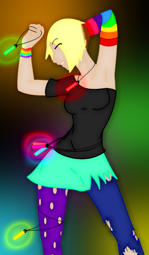 Peace and love, SaraLovers! Are you ready for a crazy night filled with dancing, glowing sticks, nudity and some weird drugs that will most likely make you pass out and wake up the next day without your one liver? Well, I sure hope so, 'cause we're raving tonight!Knowing how much her big brother Sonic loves to have fun, Saranica decides to expand her horizons a little and joins a local ravers' club. She finds the most ridiculous clothes in her wardrobe, mixes them up with some stuff she finds at a kindergarden, adds a bunch of glowing stick and paint and then she sets off for a night of her life! The DJ is loud, the crowd is wild and the night - forever young! But it seems like something is missing... Something blue, fast and hedgehog-shaped...