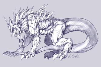 WOW! Such detail! I bet your poor hand is cramping... so many scales and skulls amd every other little thing .. I adore his head and the little collar on his neck .. this is a wonderful piece so far.. I can't wait to see it finished