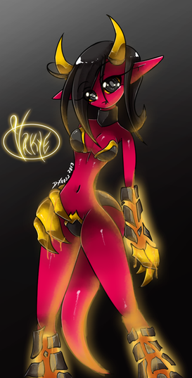 playing Nioh and toukiden and with nioh 2 I’ve had a lot of oni stuff on my mind so I wanted to do something in those themes/colors.Being very red and fluffy is a terrible curse.