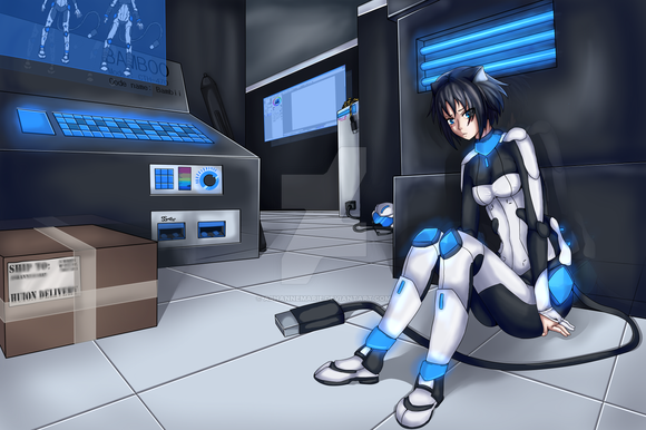 #cat #cute #cyberpunk #cyberware #emily #girl #neko #robot #shadowrun #tail