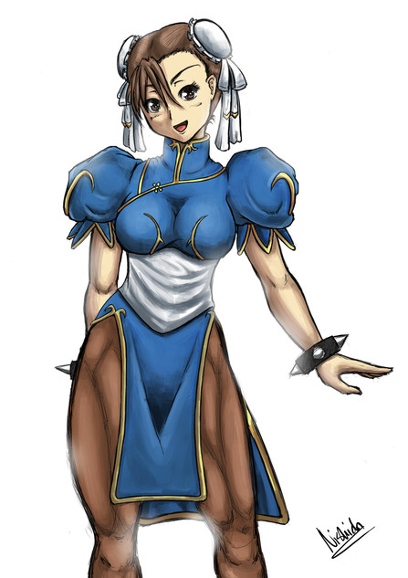 Typical Chun-Li,Β Shes all of friendly,Β then she plants her boot in your mouth! Ha!Β So incorrigable!Β Great artwork!