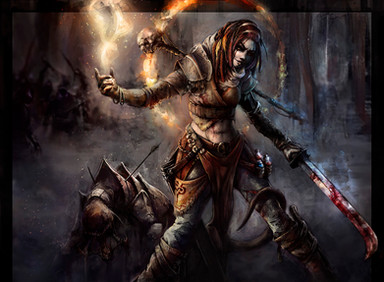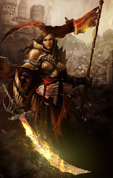 Very nice art work. The fighter seems fierce. I like her outfit and her expression. Well done! Great work.