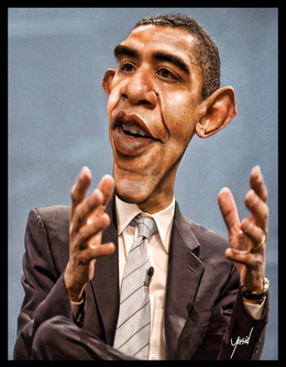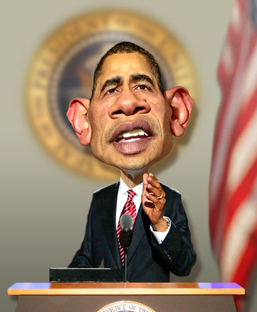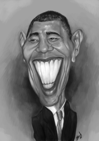 Kind of resembles the bush caricature but with obama instead. The big ears and teeth.