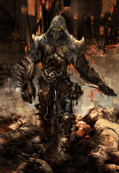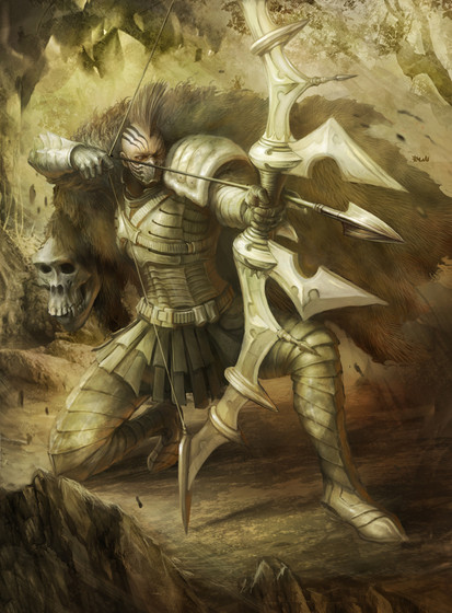 Amazingly great composition and lighting. I like the stretch of his abdominal muscle and his glowing weapon.
