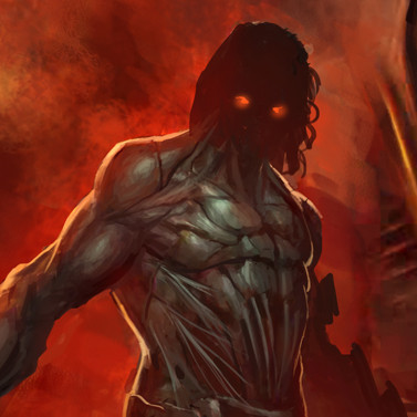 Congrats on the DD. This looks badass! Just one thing: those things around his neck...are they veins/arteries or tentacles? I can't decide if he's a hellspawn, or it could be Cthulu because of his neck area. If they aren't tentacles, then this looks like the next version of The Guy (mascot of rock band Disturbed), like that Enigma guy stated in his comment below. Damn, now I need to listen to their song 'Inside the Fire'. Fits the picture perfectly.