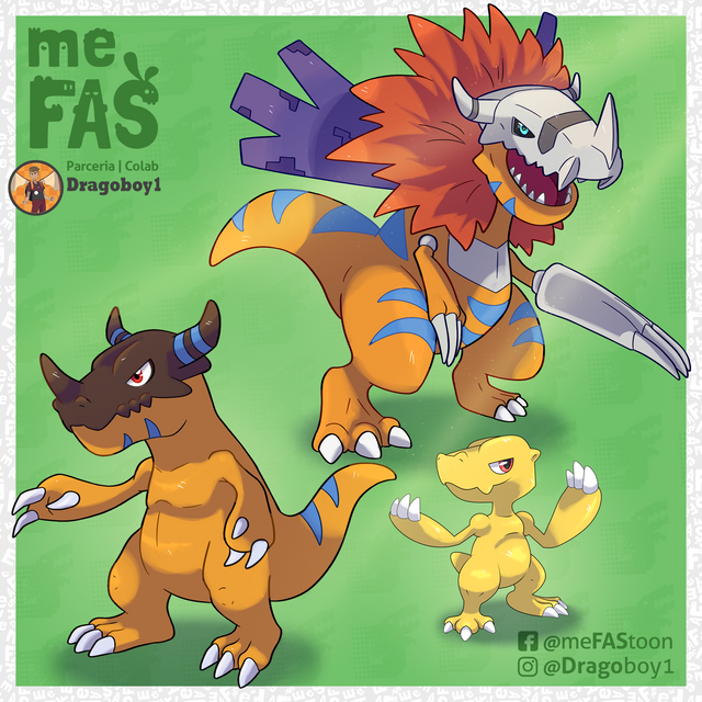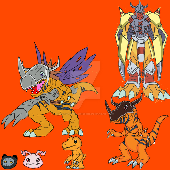 Agumon's mid stages. WarGreymon's tri design is awesome and almost different enough to be it own form but it's easy to imagine the tweaks needed for the mid stage of regular design. Much the same is true with Greymon to MetalGreymon Virus, SkullGreymon however is on the to-do list.