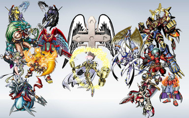 Putting lots of the Digimon in one picture seems to be a thing of mine. Here's a bunch of angel-type and beast-angel-type Digimon.
