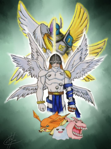 Oh my Data!!! That is amazing on them. I love it! And in the middle between MagnaAngemon Seraphimon, that you also created a new Angel called MagnaSeraphimon from my point of view and that's kid who look like young Angemon child.
